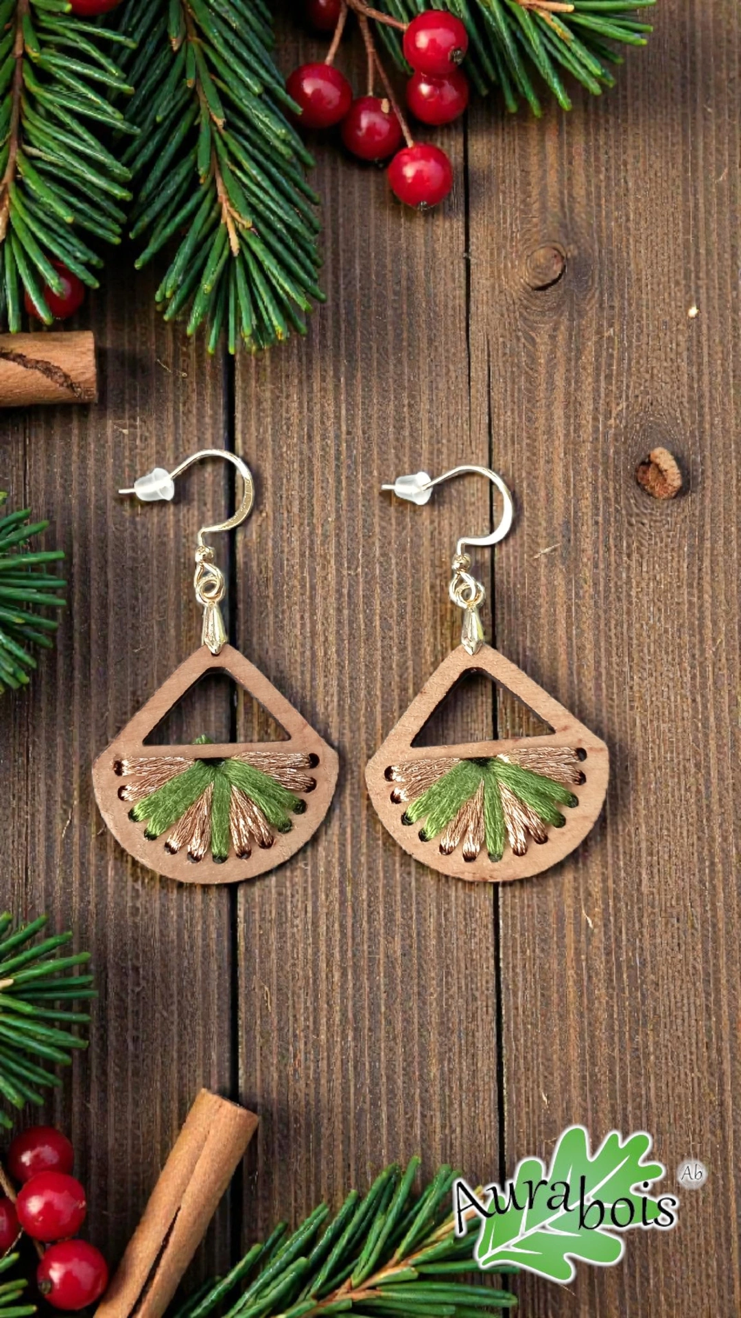 Les boucles d’oreilles “Colors” sont réalisées en hêtre massif huilé, associées à un fil de coton tissé aux couleurs vert et couleur or. Un bijou unique, à la fois naturel et coloré, pensé pour celles qui aiment se démarquer grâce aux détails qui ont du sens.